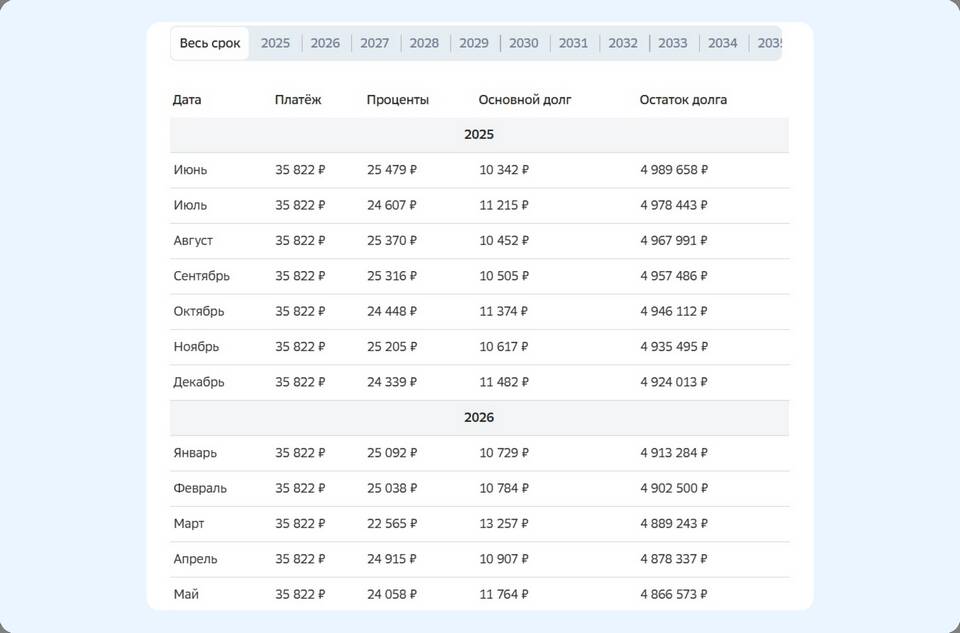 - Получите новый график платежей