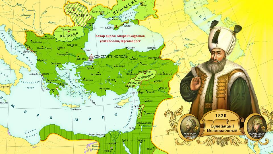 Карта мира при Сулеймане Великолепном отражала беспрецедентное расширение Османской империи, которая контролировала стратегические земли на трех континентах. Османские владения простирались от ворот Вены до Персидского залива и от Крыма до верхнего Нила. Эта империя стала ключевым связующим звеном между Востоком и Западом в XVI веке.